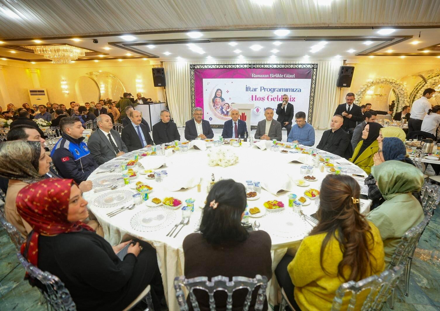 Ümraniye Belediyesi’nin tüm müdürlüklerinden personelin katıldığı iftar programı, yoğun katılım nedeniyle üç ayrı salonda gerçekleştirildi. Samimi bir atmosferde gerçekleşen programda belediye çalışanları aynı sofrada buluşarak Ramazan’ın bereketini paylaştı.