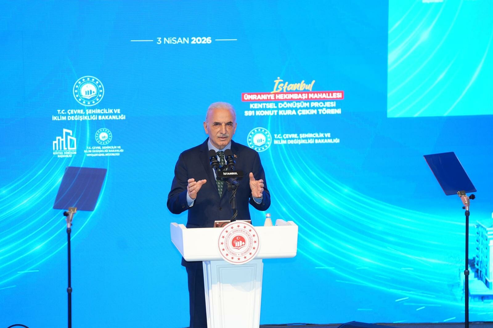 Çevre, Şehircilik ve İklim Değişikliği Bakanı Sayın Murat Kurum’un teşrifleriyle, Ümraniye Hekimbaşı Mahallesi’nde Bakanlık ve Ümraniye Belediyesi iş birliğiyle yürütülen kentsel dönüşüm projesi tamamlandı. Depreme dayanıklı, modern ve sosyal donatı alanlarıyla dikkat çeken projede hak sahipleri için kura çekimi gerçekleştirildi.
